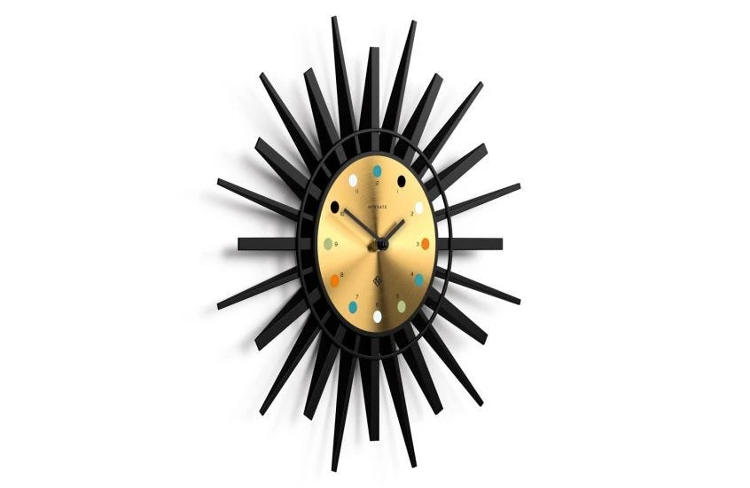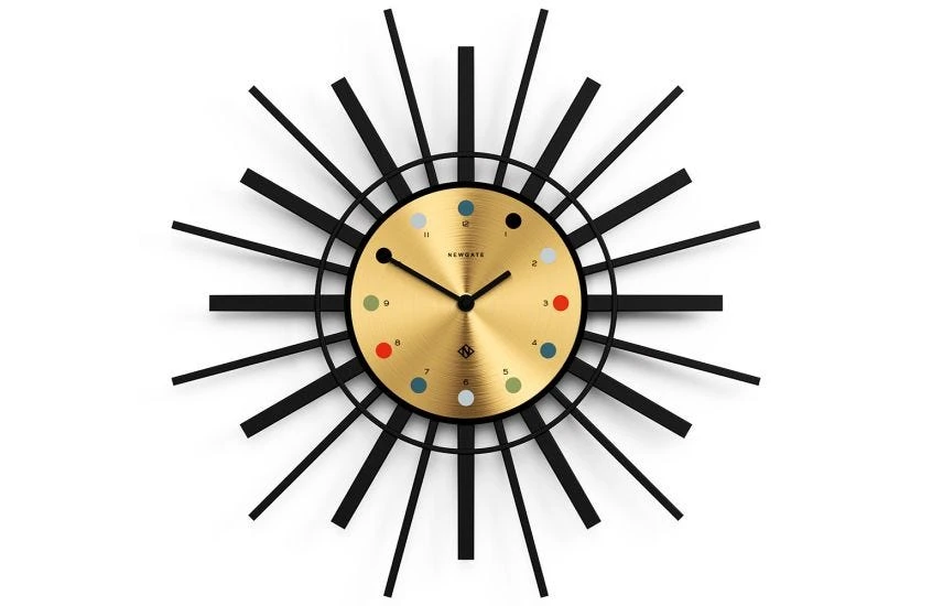 As striking as its name suggests, the Stingray Clock is an eye-catching piece that is both sophisticated and makes a statement. Featuring a brushed brass clock face with brightly coloured dots accompanying numerical numbers, this statement piece unveils itself layer by layer. The brass dial’s smooth form strongly contrasts against the framed black extension — imitating the electric spikes of a stingray. Hang on a living room or office wall for an intriguing, contemporary look.