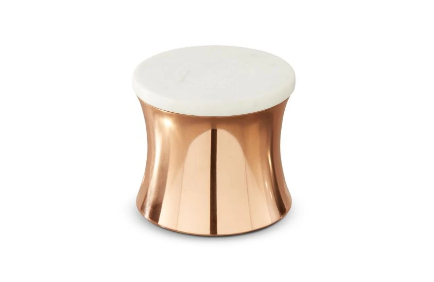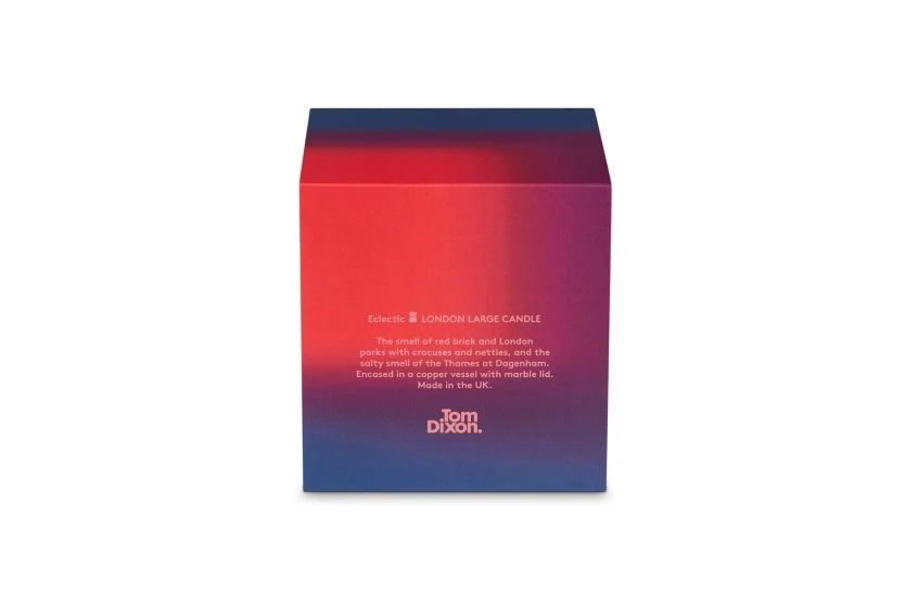 This contemporary large candle features Tom Dixon’s luxurious London scent. With notes reminiscent of red brick, London’s parks and the salty smell of the Thames at Dagenham, the scent is a true homage to the capital. The candle’s vessel is crafted using polished copper and completed with a solid white marble lid.