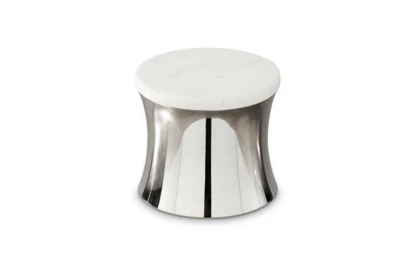 This contemporary large candle features Tom Dixon’s luxurious Royalty scent. With notes reminiscent of afternoon tea with Weal Grey, scones and strawberry jam, as well as the leather seats of a classic Bentley, Royalty is a true homage to British life. The candle’s is housed in a nickel hand-spun vessel and completed with a solid white marble lid.