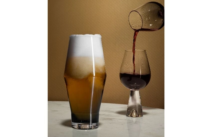 In Black, Tank sets a mysterious and indulgent tone to our glassware collection. Created through a technically demanding fusion of clear and solid black glass, Tank is mouth-blown into the graphic forms for timeless table top architecture.