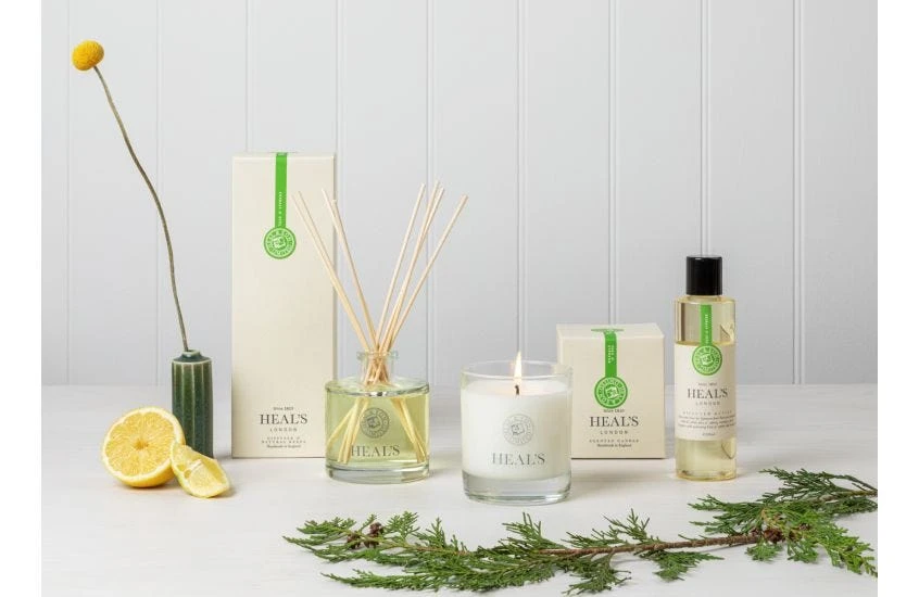 Comes in a glass holder imprinted with the Heal’s insignia.